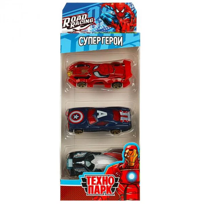 Машина металл ROAD RACING набор супергерои 7, 5 см, 3 шт, в ассорт, кор. Технопарк RR-SET-0103-R