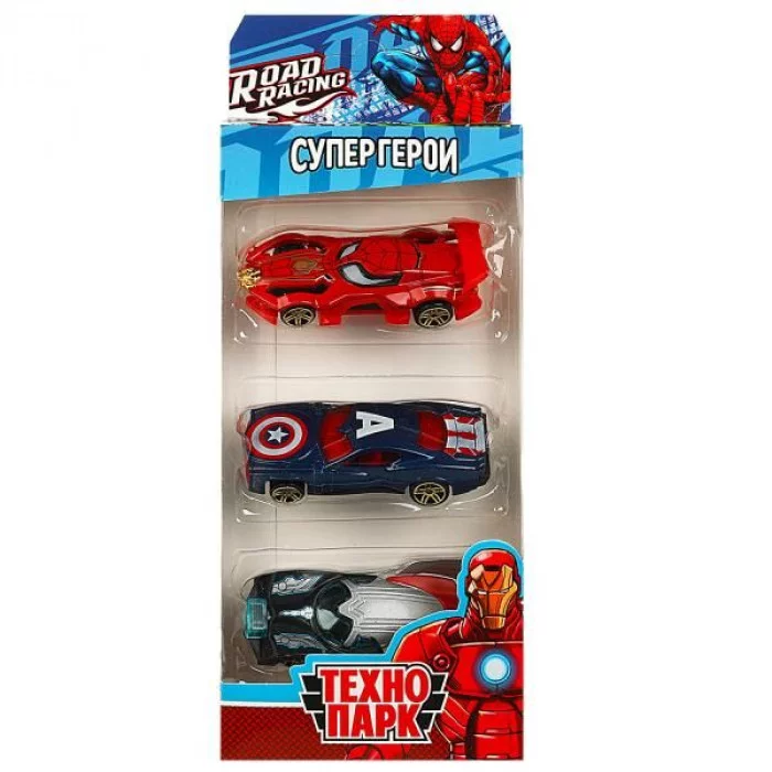 Машина металл ROAD RACING набор супергерои 7, 5 см, 3 шт, в ассорт, кор. Технопарк RR-SET-0104-R