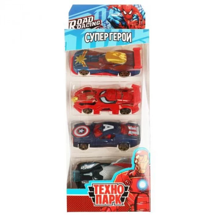 Машина металл ROAD RACING набор супергерои 7, 5 см, 4 шт, в ассорт, кор. Технопарк RR-SET-0101-R