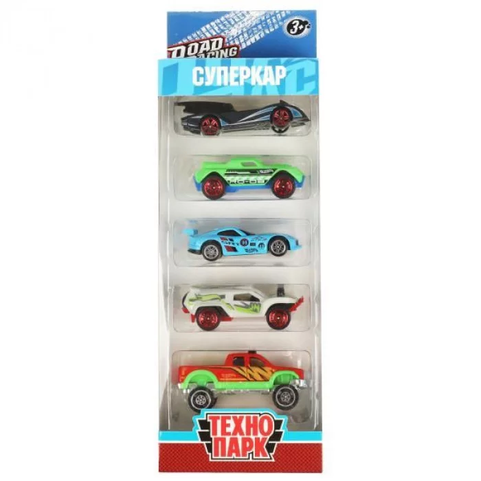 Машина металл ROAD RACING набор СУПЕРКАР 7,5 см, 5 шт,в ассорт, кор. Технопарк RR-SET-047-R