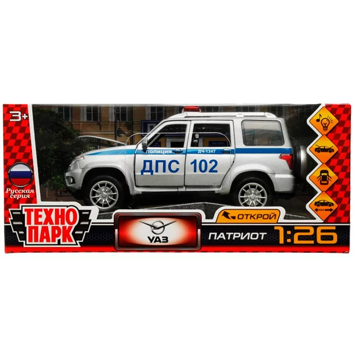 Машина металл свет-звук UAZ ПАТРИОТ ПОЛИЦИЯ 17, 8 см РАТRIОТ-124SL-РОL-GY