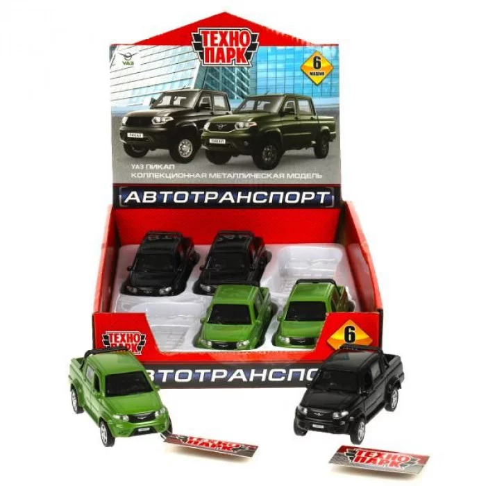 Машина металл УАЗ ПИКАП 12 см, двери, багаж, инерц, дисп. ассорт Технопарк PICKUP-12DB6-MIX