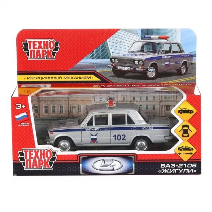 Коллекционная металлическая машина «ВАЗ-2106 Жигули. Полиция» ТМ «Технопарк» непременно понравится юному автоколлекционеру: