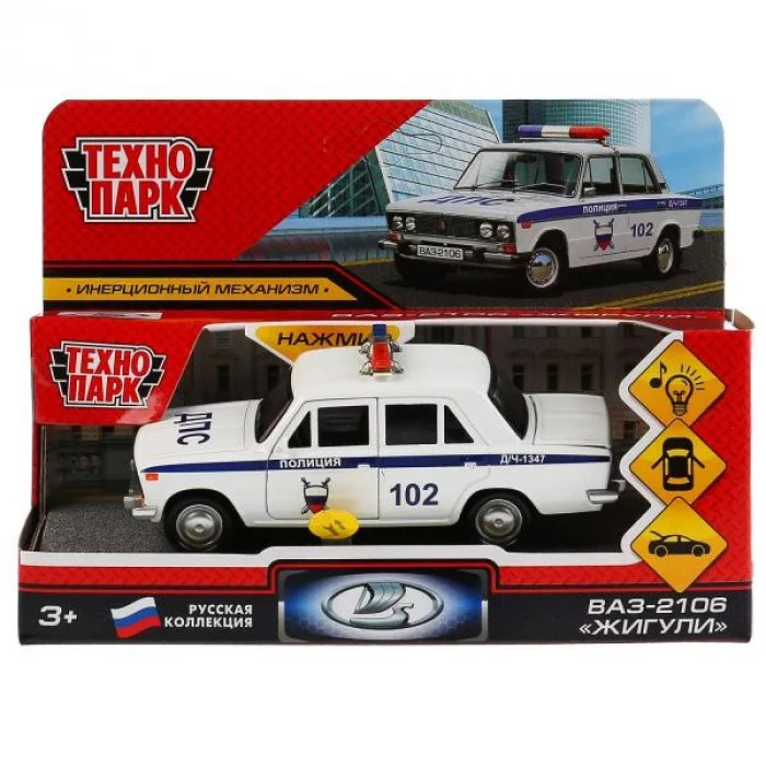 Машина "ВАЗ-2106 жигули Полиция" 12 см металлич.инерционная 2106-12SLPOL-WH