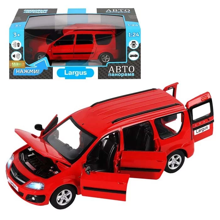 ТМ "Автопанорама" Машинка металлическая 1:24 LADA LARGUS, красный, откр. 4 двери, капот, багажник, свет, звук, инерция, в/к 24,5*12,5*10,5 см JB1251419