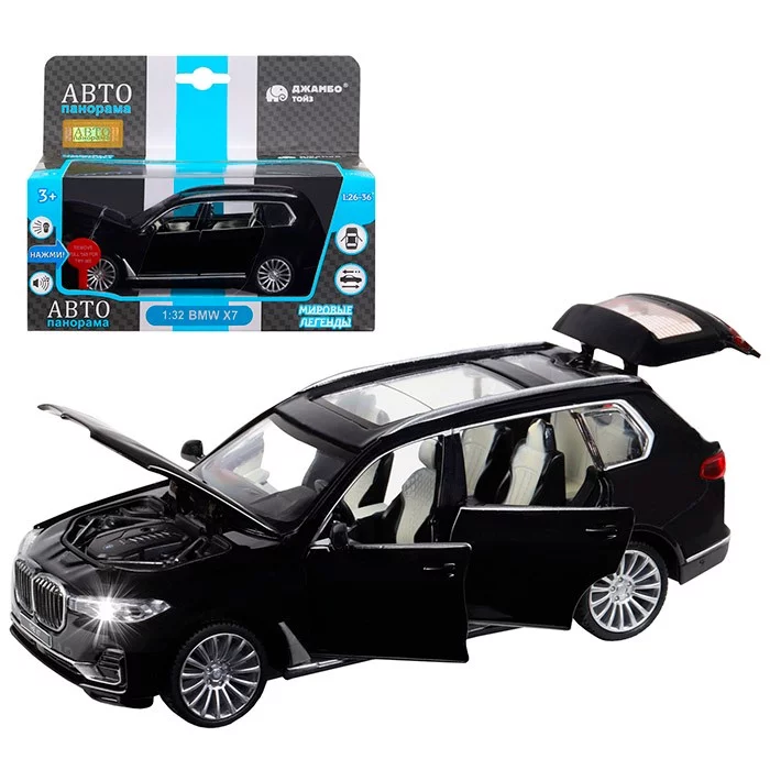 ТМ "Автопанорама" Машинка металлическая 1:32 BMW X7, черный, свет, звук, откр. четыре двери, капот и багажник, инерция, в/к 17, 5*13, 5*9 см JB1251313