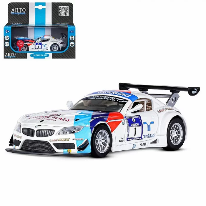 ТМ "Автопанорама" Машинка металлическая 1:32 BMW Z4 GT3, белый, свет, звук, откр. двери и капот, инерция, в/к 17, 5*13, 5*9 см JB1251302