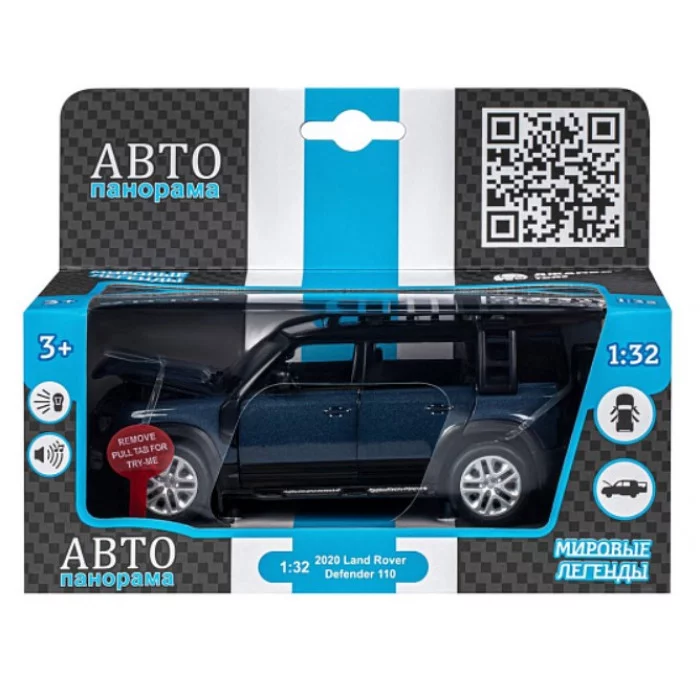 ТМ "Автопанорама" Машинка металлическая 1:32 Land Rover Defender 110, синий, откр.4 двери, капот, багажник, свет, звук, свободный ход колес, в/к 18*13, 5*9 см JB1251534