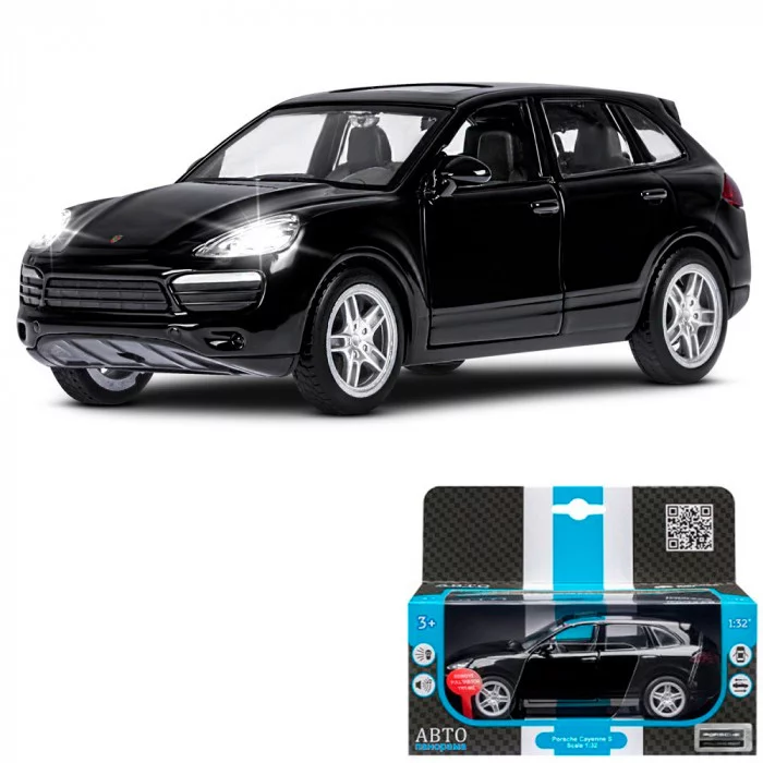 ТМ "Автопанорама" Машинка металлическая 1:32 Porsche Cayenne S, черный, свет, звук, откр. двери и багажник, инерция, в/к 17, 5*13, 5*9 см JB1251579