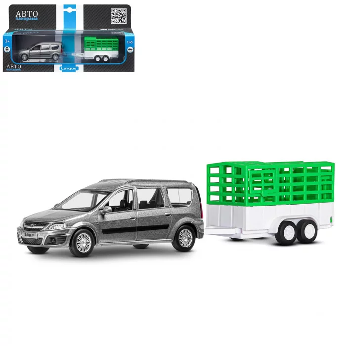 Металлическая машинка LADA LARGUS универсал с прицепом в масштабе 1:43 - уменьшенная копия настоящей машины, которая прекрасно дополнит игрушечный автопарк.