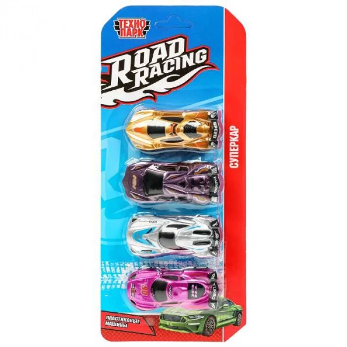 Машина пластик ROAD RACING набор СУПЕРКАР 7, 5 см, 4 шт, в ассорт, блист. Технопарк RR-SET-С0101-R