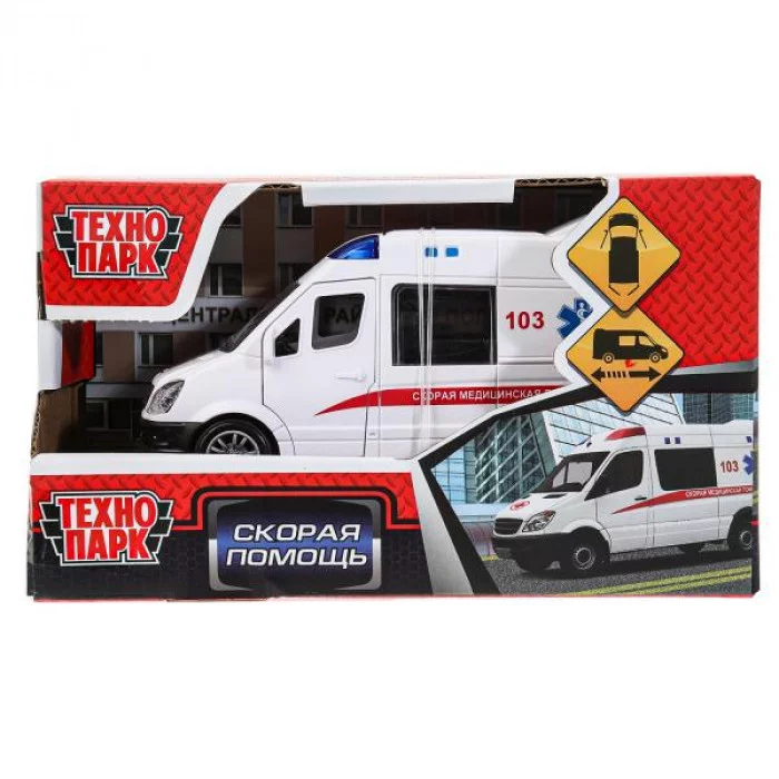 Пластиковая модель «Скорая помощь» ТМ «Технопарк» - прекрасный подарок для юного автолюбителя: