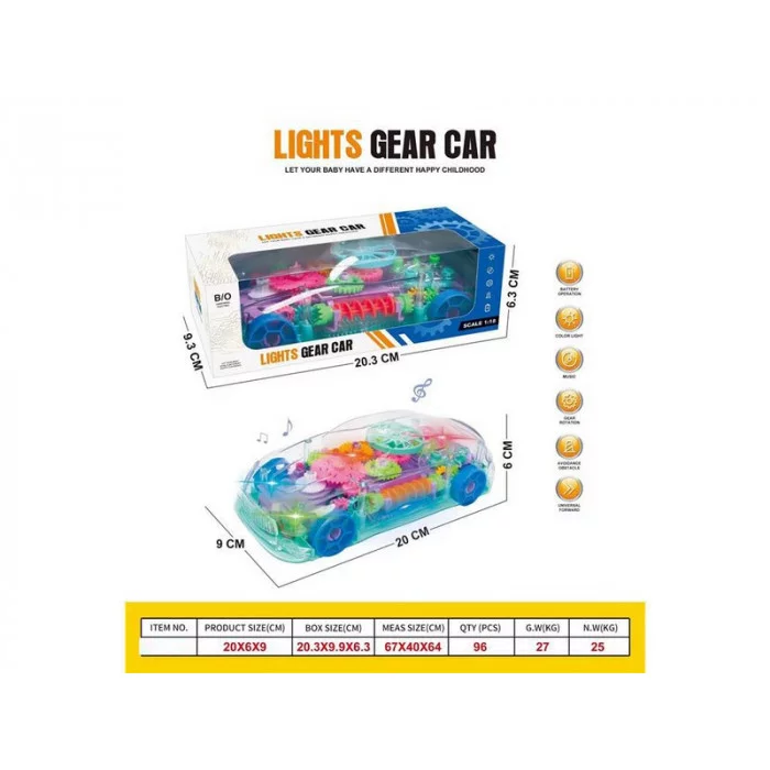 Машинка на бат., шестеренки, свет./звук. эффекты, в/к 20, 3*9, 3*6, 3 см Y12414015