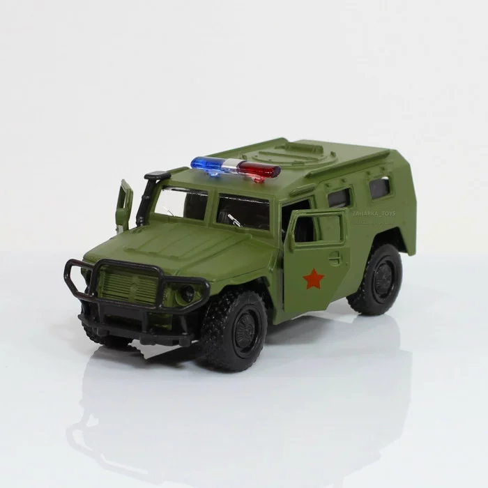 Машинка металлическая инерционная. Коллекционная модель в масштабе 1:43. ГАЗ Тигр из металла представлена в вариантах: военная, ппс.