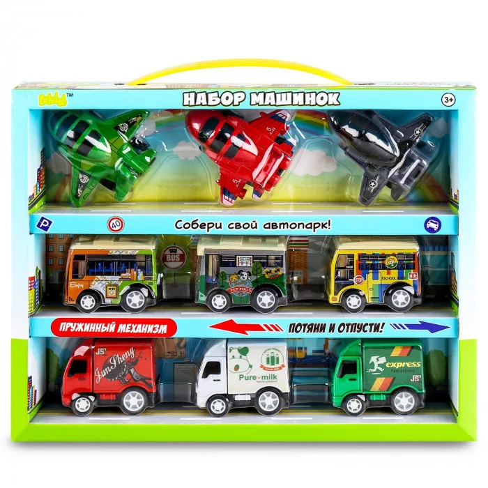 Набор игрушек "Пуллбэк: Самолёты, автобусы и грузовики" (5 см, 9 шт., пружинный механизм) BBA1602-129