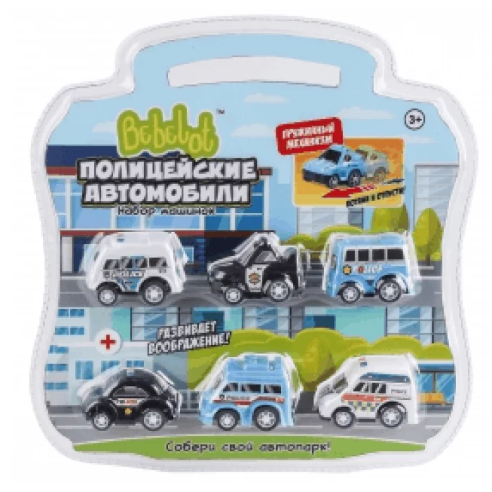 Набор машинок Bebelot "Пуллбэк: Полицейские автомобили" (5 см, 6 шт., пружин. механизм) BBA1602-139