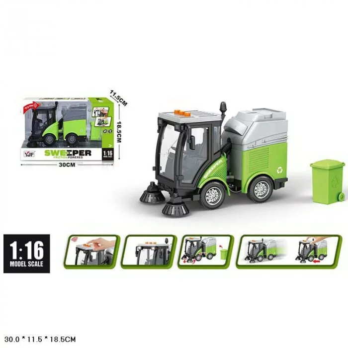 Машина инерционная "Городские службы" является маленькой копией настоящей машины, предназначенной для чистки асфальтовых дорог. Игрушка имеет световые и звуковые эффекты, что добавит реалистичности к игре. При нажатии кнопок на крыше, воспроизводятся автомобильные звуки и горят лампочки. Инерционная машинка выполнена из прочного и качественного пластика, с ней можно играть дома и на улице. Машинка работает от 3-х батареек типа "AG13".