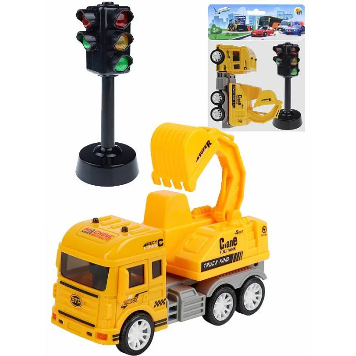 Строительная техника. Эскаватор в наборе со светофором. Открывающиеся двери 16.5х5х21 ( Арт. И-8782)