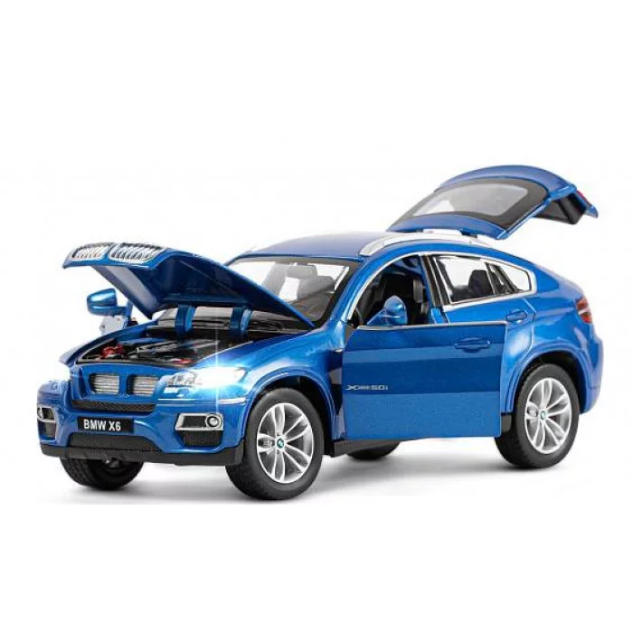 ТМ "Автопанорама" Машинка металлическая 1:26 BMW X6, синий, откр. двери, капот и багажник, свет, звук, свободный ход колес, в/к 24,5*12,5*10,5 см JB1200121