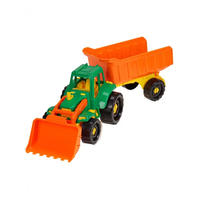 Игрушечный трактор-бульдозер с прицепом понравится любому ребенку! Он изготовлен из высококачественного пластика. Подходит для игры в помещении или на открытом воздухе. Игрушка полезна для развития координации, мелкой моторики пальцев рук, восприятия цвета и воображения.