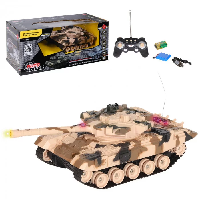 AUTODRIVE Р/У Танк, М1:32, ИК-бой, 40MHz, повороты башни, движ.пушки вверх/вниз, индик.жизни, коричн.камуфляж, в/к 37*19*16.5см JB1168333