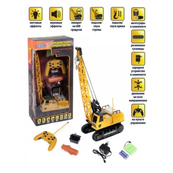 Подъемный кран BeBoy р/у, движ. во всех направ. поворот башни на 680 гр. подъем/спуск стрелы и крюка, звук.и свет. эффекты, в/к 26, 5*16*52, 5 см. IT105262