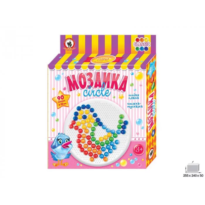 Мозаика Circle – это мозаика на круглой плате. В комплект набора входит книжка-подсказка с примерами рисунков.
