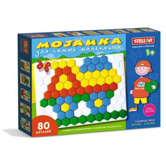 Размер изделия: 47,5х36х4 см Упаковка: картонная коробка Состав: полипропилен Комплектность: 80 деталей, прямоугольное поле Страна происхождения: Россия Пластиковая мозаика для самых маленьких, состоящая из 80 удобных цветных, крупных фишек, диаметром 4 см. Малыш будет выкладывать разноцветные элементы на игровом поле, тренируя при этом мелкую моторику, усидчивость, способность доводить начатое до конца, а так же логическое и образное мышление.
