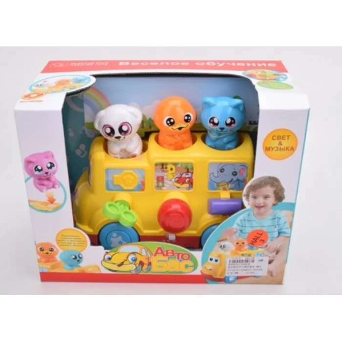 Автобус с животными-пассажирами (заводит, сигналит, тормозит), звук. и свет. эффекты 30*17*23 см. 1858535