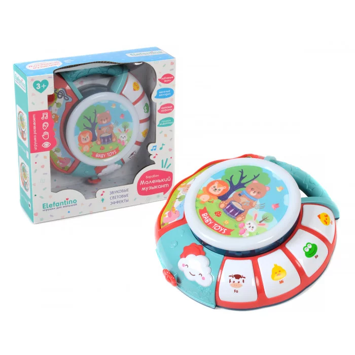 Барабан развив. "Elefantino" на бат. подвиж.эл. голоса животных, весел. мелодии, свет. эффекты, в/к 26*7, 8*26 см. IT106450