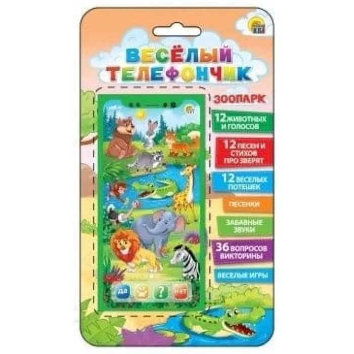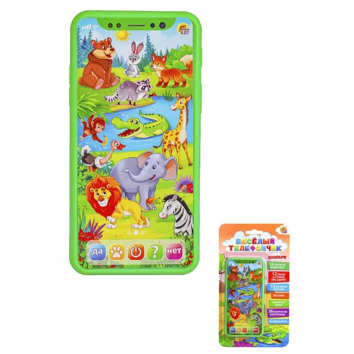 Музыкальный телефон "ВЕСЕЛЫЙ ТЕЛЕФОНЧИК. ЗООПАРК" научит петь вместе с любимыми героями. В телефончике представлены 36 вопросов, 12 песен, 3 режима.