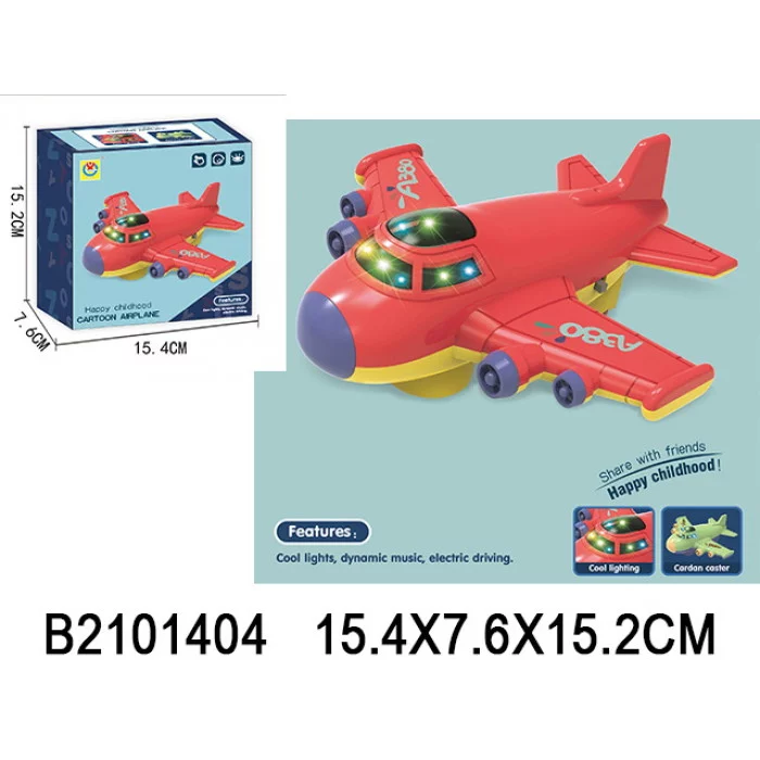 Самолет на бат., световые и звуковые эффекты, ездит, батарейки не входят в комплект, в/к 20*8, 7*11, 5 см 2101404