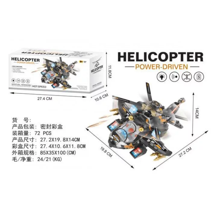 Вертолет на бат., световые и звуковые эффекты, размер: 19,8*27,2*14 см, в/к 27,5*12*10,5 см Y23709007