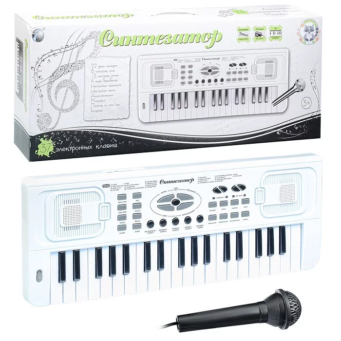 Синтезатор "Супер музыкант" с микрофон, от сети и на батарейках, в коробке HS3716B