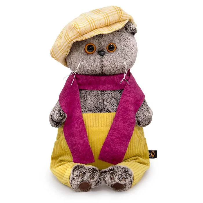 Мягкая игрушка шотландский вислоухий плюшевый Басик кот с мягкой серебристо-лиловой шерсткой, выразительными медовыми глазами и коротким хвостиком.