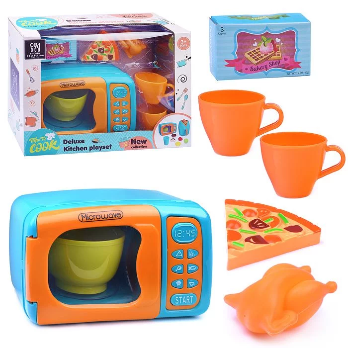 Набор бытовой техники "Микроволновка" с продуктами и чайными чашечками, в коробке 623A