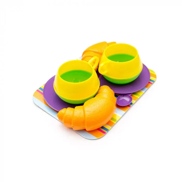 Набор "Чай вдвоем" игрушка, которую можно взять с собой в дорогу или на прогулку. В состав набора вместе с кукольной посудкой входит круасан.
