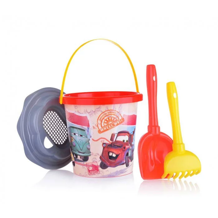 Набор Disney/Pixar «Тачки» №19: ведро с наклейкой, ситечко "Солнышко", лопатка №5, грабельки №5 65483