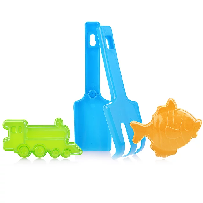 Набор для песка (Лопатка, грабли, 2 форм.) в сетке 2-222