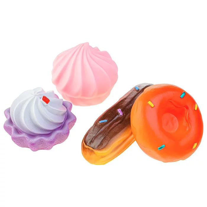 Состав: пончик, эклер, зефир и корзиночка с кремом. Дети будут в восторге от реалистичных любимых сладостей и с радостью будут делиться ими с друзьями, использовать в сюжетно-ролевых играх.