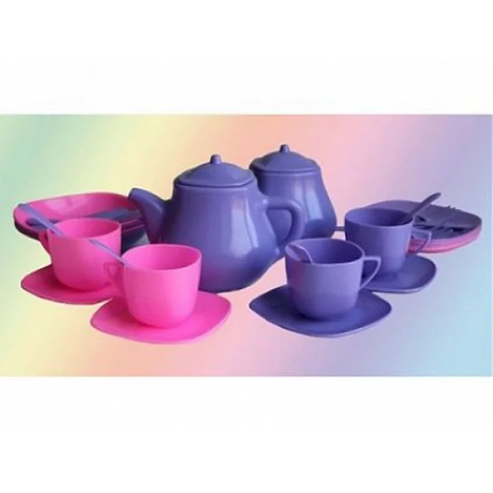 Очень нежный и сказочный набор детской посуды "Мальвина", который создан для настоящих принцесс!В комплекте прилагается 28 предметов: чайник, сахарница, чашечки, блюдца, тарелки, ложечки – все, что необходимо для сказочного чаепития.Предметы представлены в мягких цветах розового и фиолетового.Девочка сможет устраивать совместные чаепития и беседы: по тарелочкам она сможет разложить пирожные, а в чайнике заварить ароматный чай.Посуда изготовлена из пластика, поэтому, если девочка уронит чашку, она не разобьется и ребенок не поранится.