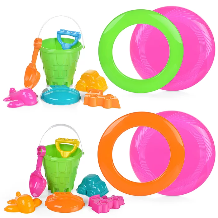 Набор летний №4 (ведро + совок + грабли + фрисби + кольцо + 4 формочки) НЛ №4-Л