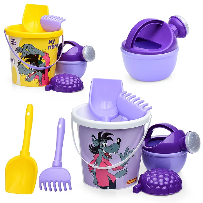 Набор "Ну, погоди!" №5: ведро с наклейкой, лопатка №5, грабельки №5, формочка (малина), лейка малая №4 83258