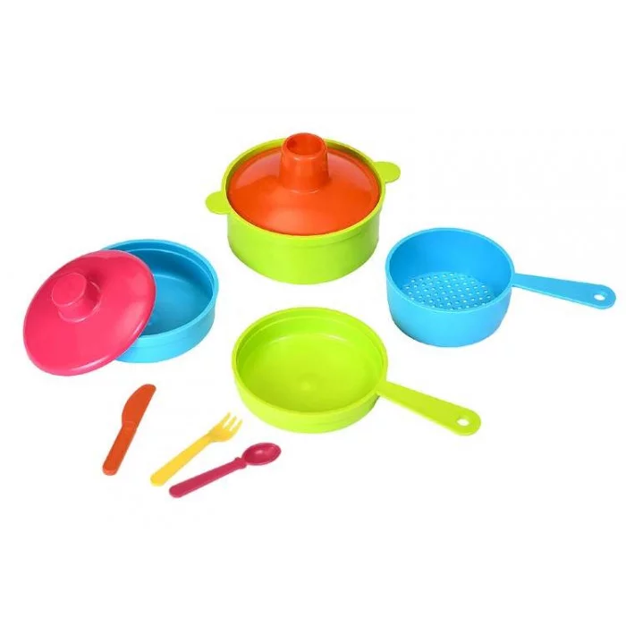 Устроить настоящий Рыбный день поможет юному повару этот набор посуды. Яркая и функциональная посудка вдохновит на приготовление необычных и полезных рыбных блюд. Все, что нужно для первых навыков в этой области, входит в набор: кастрюля и сковородка, миска, сито и набор столовых приборов. После такой игры малыши с удовольствием будут помогать маме на настоящей кухне!