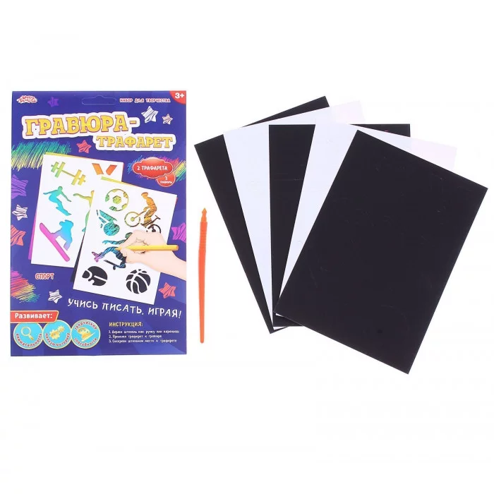 3 гравюры и 2 трафарета "Спорт" с цветным основанием 1063919