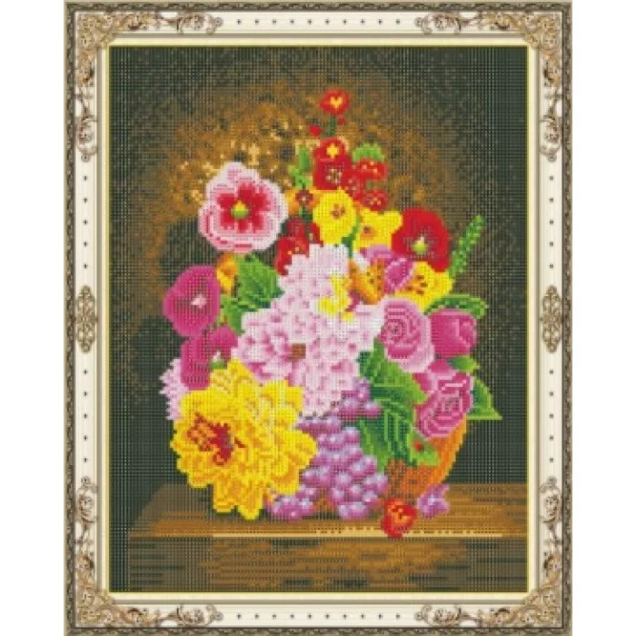 Алмаз. моз. 40х50 см с подр., с полн. заполн., камни разн. форм. "Яркий букет". Арт. WK023