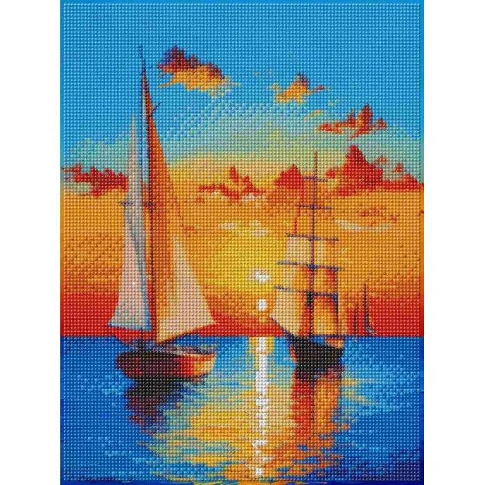 Алмаз мозаика (блест.) 30х40 см, с подр., с полн. заполн. (30цв.) Парусники в море (арт.АЛМ-0028)