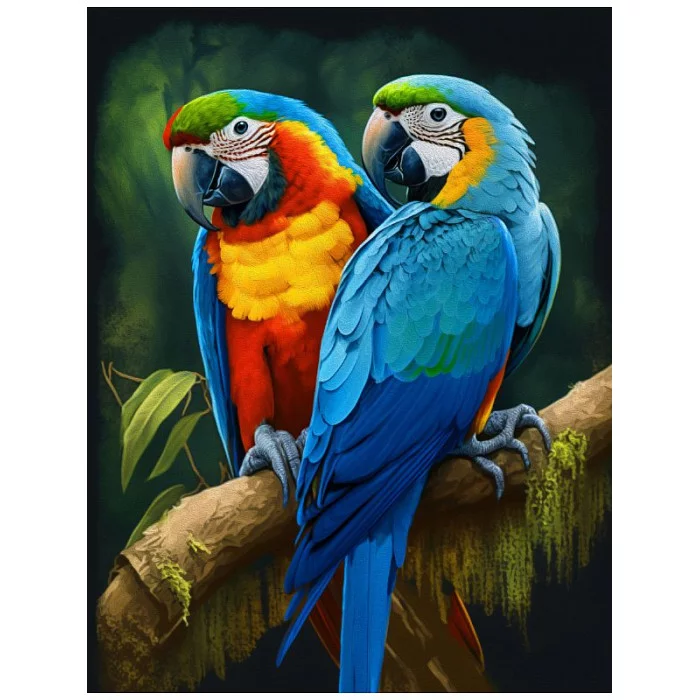 Алмаз мозаика (клас.) 30х40 см, с подр., с полн. заполн. (28 цв.) Голубые ара (Арт. НД-8582)