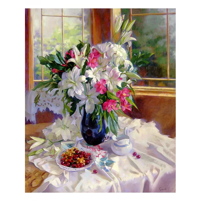 Классическая алмазная мозаика понравится всем любителям творчества! Такое хобби способствует развитию зрительного восприятия, воображения, усидчивости и мелкой моторики. Готовое изделие может стать украшением интерьера или прекрасным подарком близким и друзьям. Мозаика с полным заполнением, на подрамнике. Состав набора: самоклеящаяся основа с подрамником размером 30x40 см, 30 цветов, стразы, контейнер для страз, карандаш-стилус, клеевая подушка, крепеж, схема.