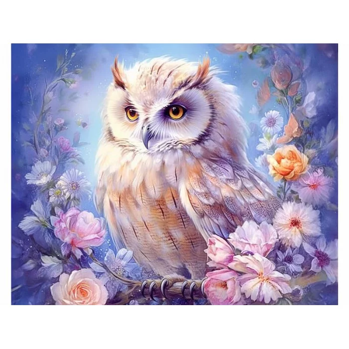 Алмаз. мозаика (клас.) 40х50 см, с подр.,с частичн. заполн. (30цв) Цветочный филин (Арт. НД-0589)
